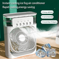 - Upgrated Personal Air Conditioner and Fast Cooling: The latest portable air cooler integrates desk fan, air cooler, misting humidifier and air circulator. The small evaporative air cooler cooling you in hot summer and can add ice water or small ice cubes to fast cool down the hot air around you, humidifying the air in dry autumn and winter.